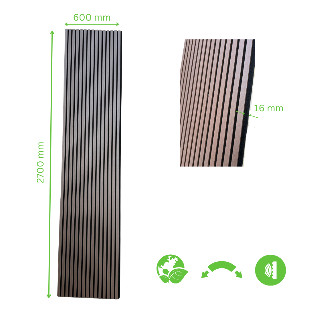 Verleihen Sie Ihren Räumen eine hochwertige Optik und verbessern Sie gleichzeitig die Akustik mit der Akustikpaneele Dunkelholz. Diese stilvolle Paneele kombiniert ästhetische Eleganz mit funktionaler Schalldämmung und ist ideal für Wohnräume, Büros, Restaurants oder Konferenzräume. Durch die flexible Struktur lässt sich die Akustikpaneele in Rundungen und Ecken sehr gut einsetzen.