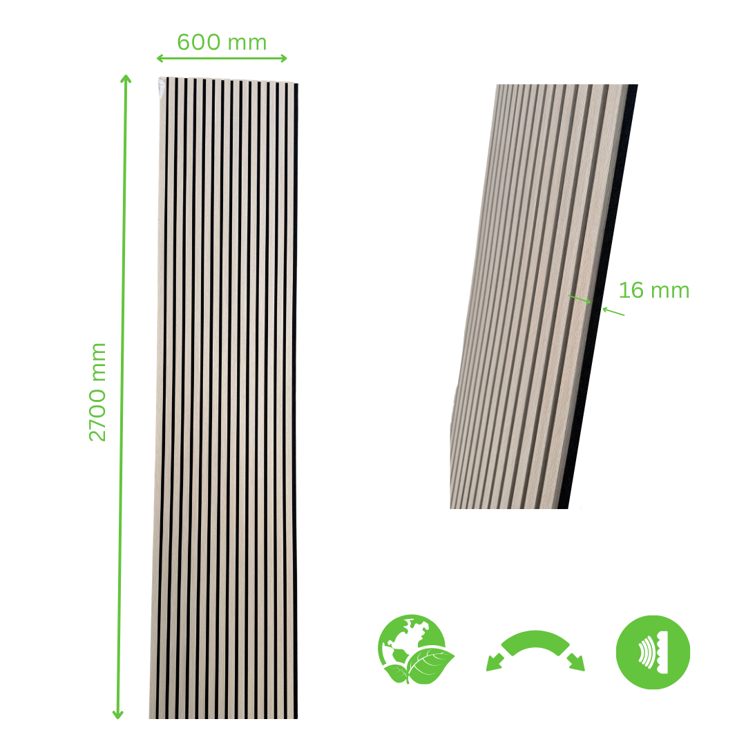 - Die Paneele reduziert störende Nachhallzeiten und verbessert die Raumakustik durch ihre speziellen Lamellenstrukturen und die schallabsorbierende Rückseite.