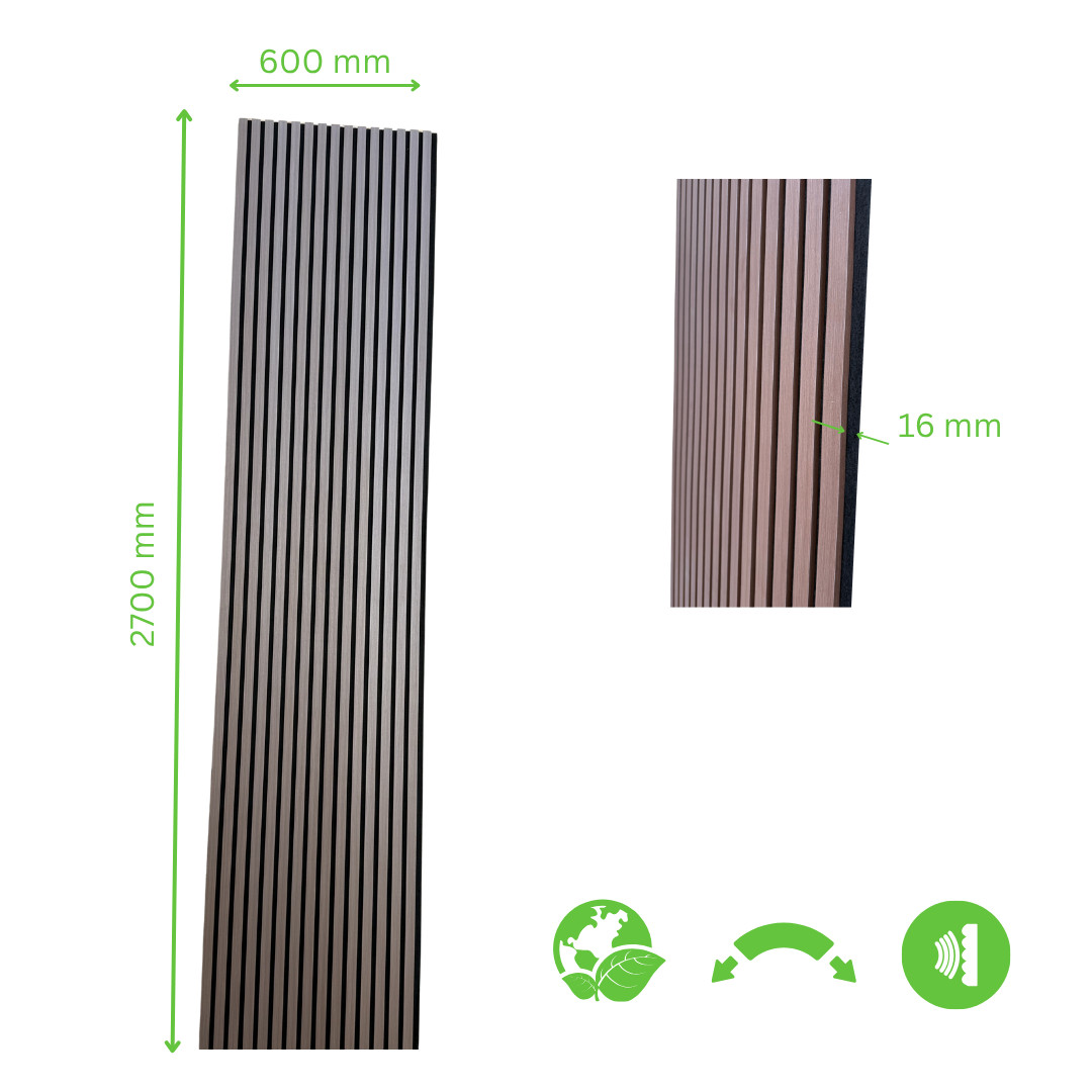 Verleihen Sie Ihren Räumen eine hochwertige Optik und verbessern Sie gleichzeitig die Akustik mit der Akustikpaneele Mittelholz (Dunkel). Diese stilvolle Paneele kombiniert ästhetische Eleganz mit funktionaler Schalldämmung und ist ideal für Wohnräume, Büros, Restaurants oder Konferenzräume. Durch die flexible Struktur lässt sich die Akustikpaneele in Rundungen und Ecken sehr gut einsetzen.